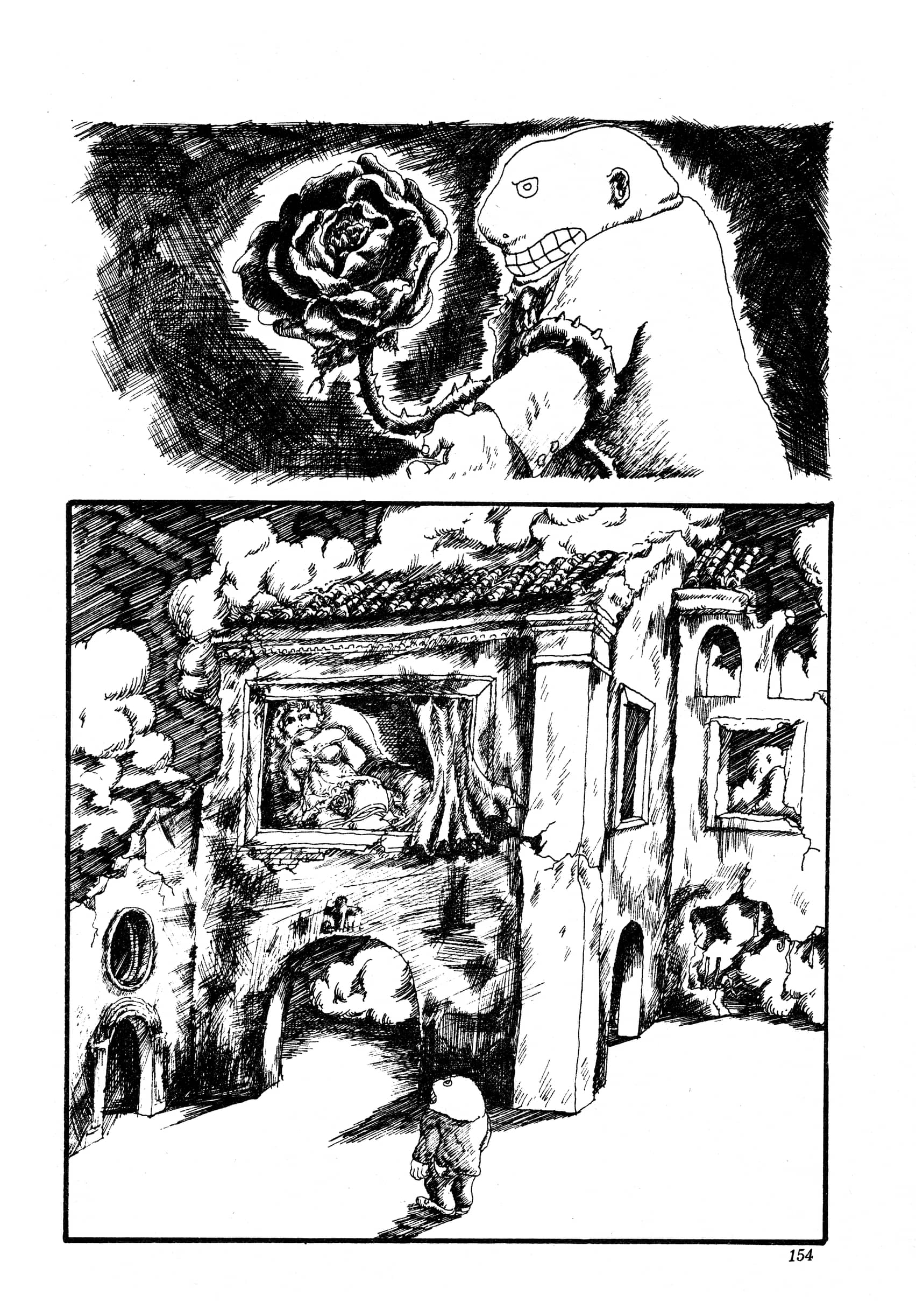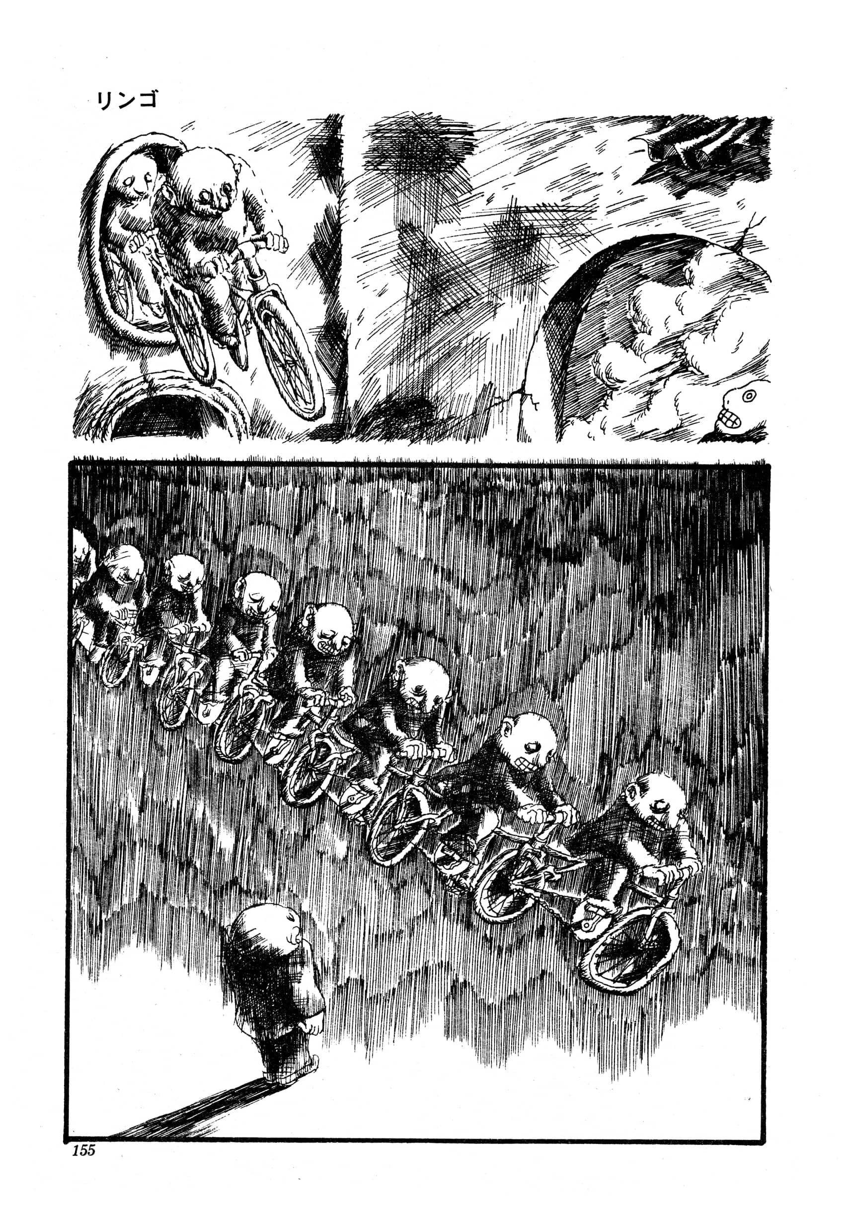 Which brings us to today's comic, the one-shot "Apple" ("Ringo" in Japanese). By this point Inoue was approaching forty and was already well into his career in pictures books, but reading this and you wouldn't guess it, because "Apple" is a dense and dark surreal adventure of associations. It's bizarre, challenging stuff: stuff to stare at and admire and reread and pick up different meanings and ideas with each visit.
