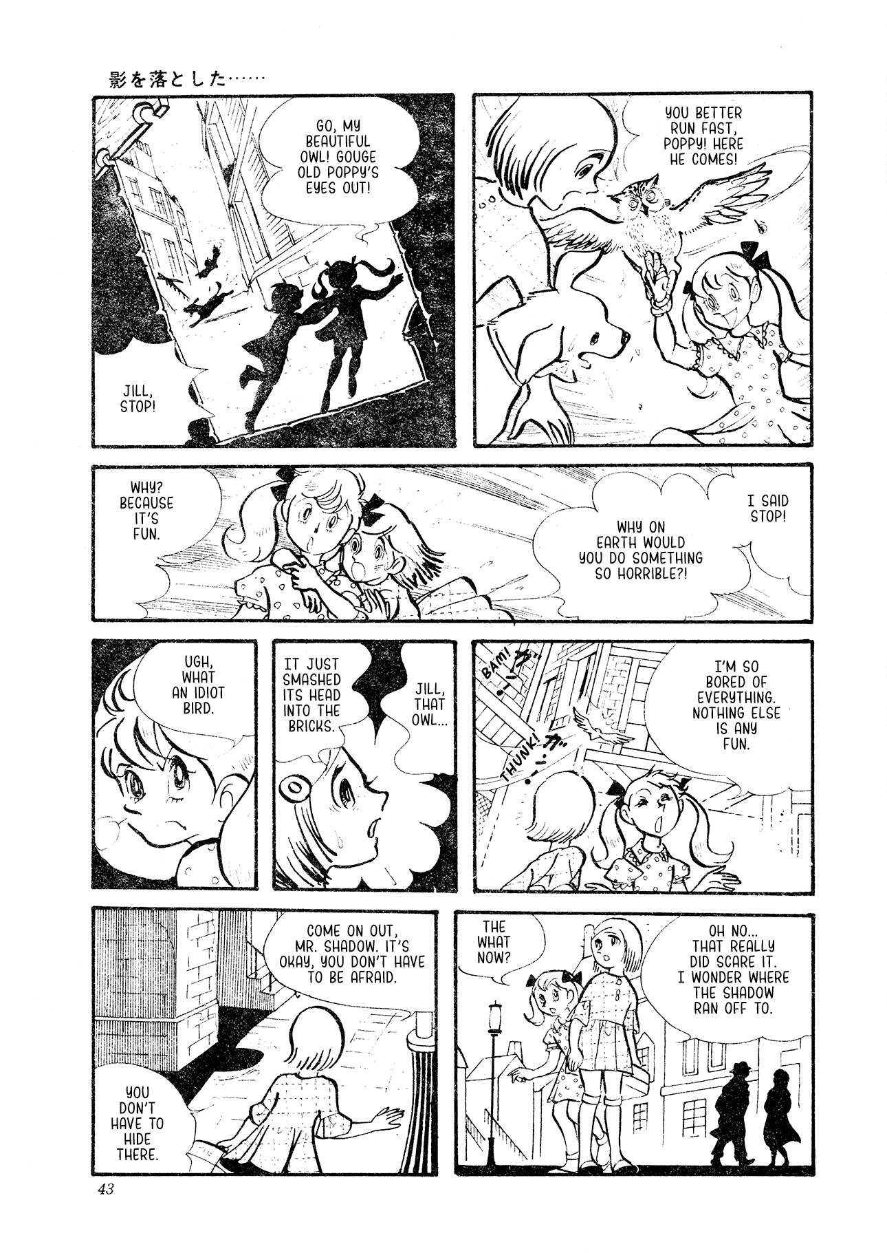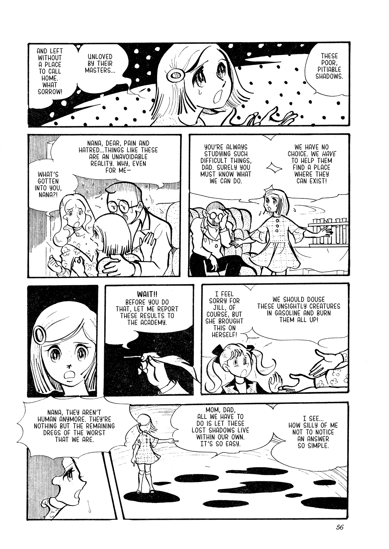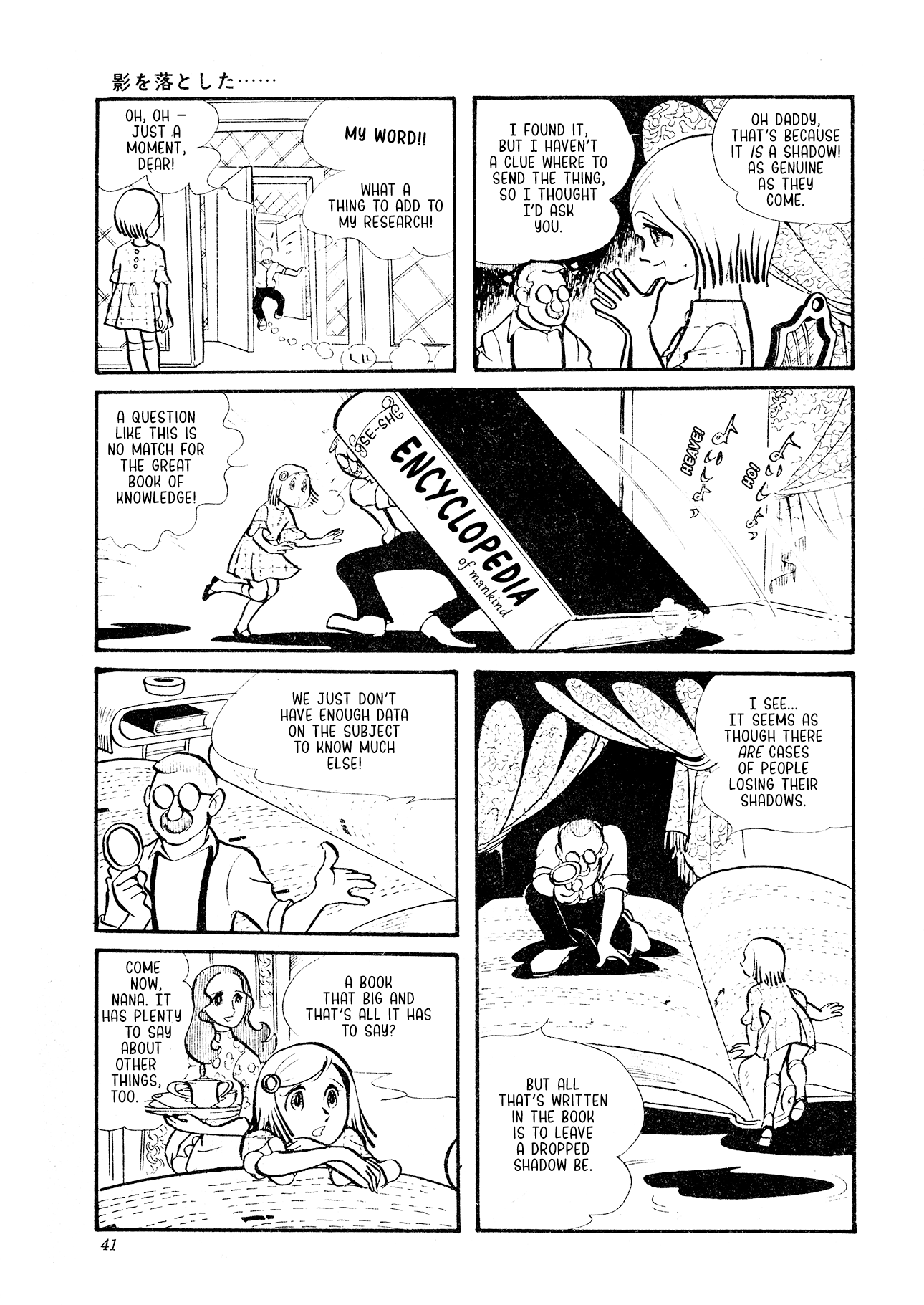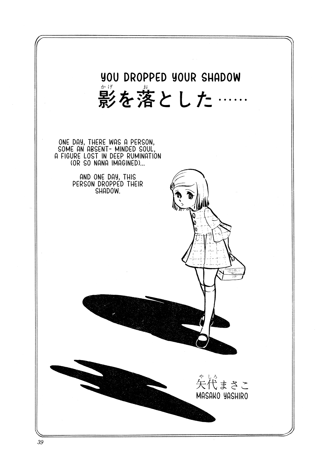 The only thing I'll add today is that the more I read from Yashiro the more clear it becomes how astounding she is. Besides being an important, influential figure in the world of shoujo manga, she was also, when this story was published, operating on a level VERY few artists could match. She was absolutely holding her own with the ultimate titans of the medium like Tezuka and Ishinomori, blending incredibly expressive drawings with a willingness for experimentation and the bravery to dive headfirst into wildly complex themes--stuff that feels only more relevant today. She's solidified herself as one of my all time favorite figures in manga, and I think today's story, "You Dropped Your Shadow" will do as good a job as anything at convincing you why.