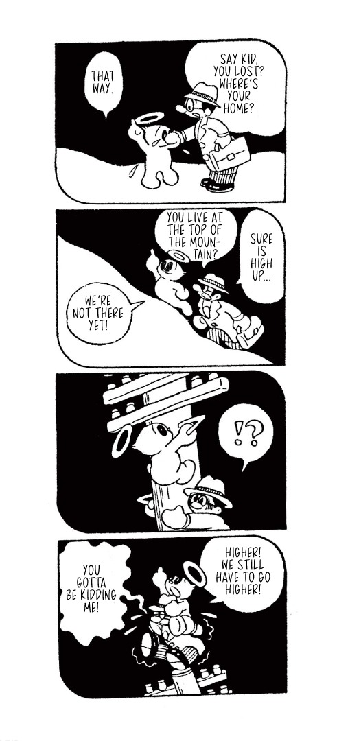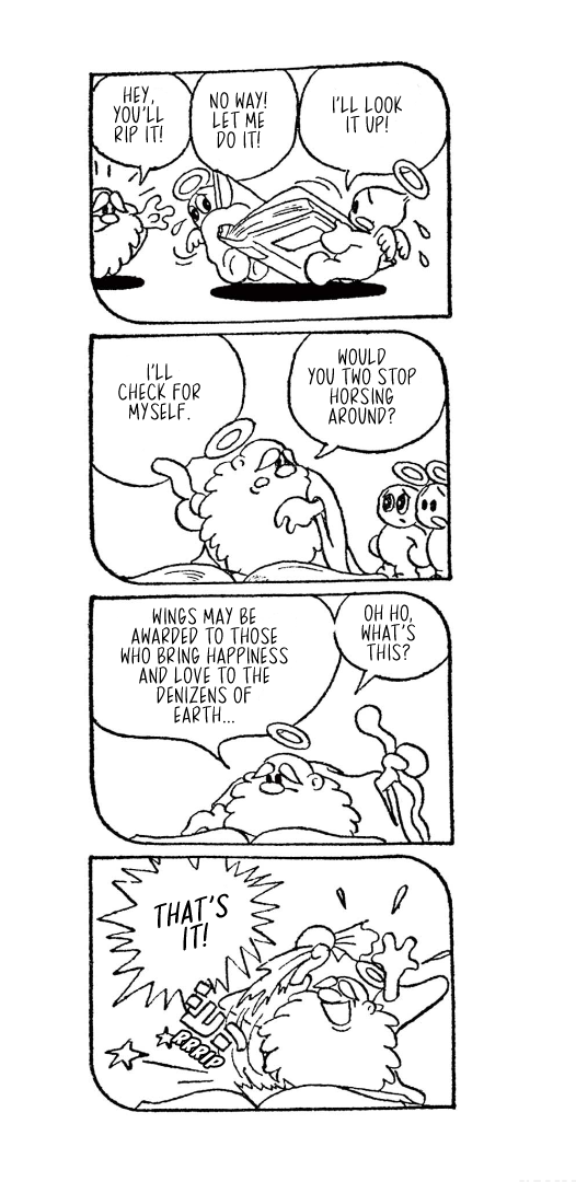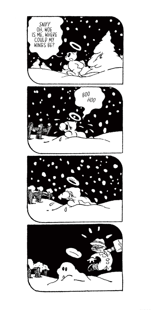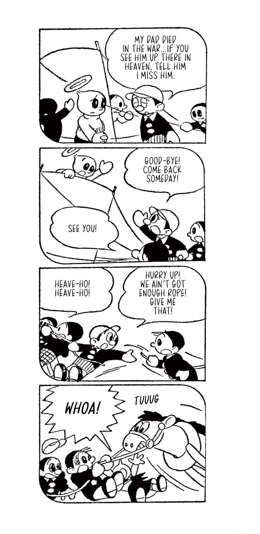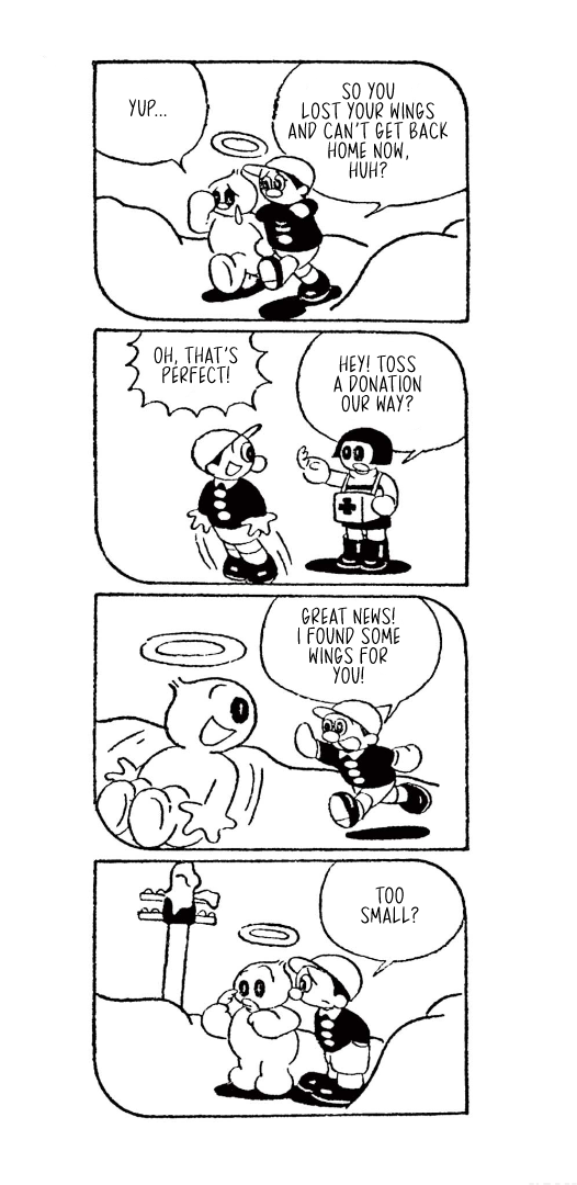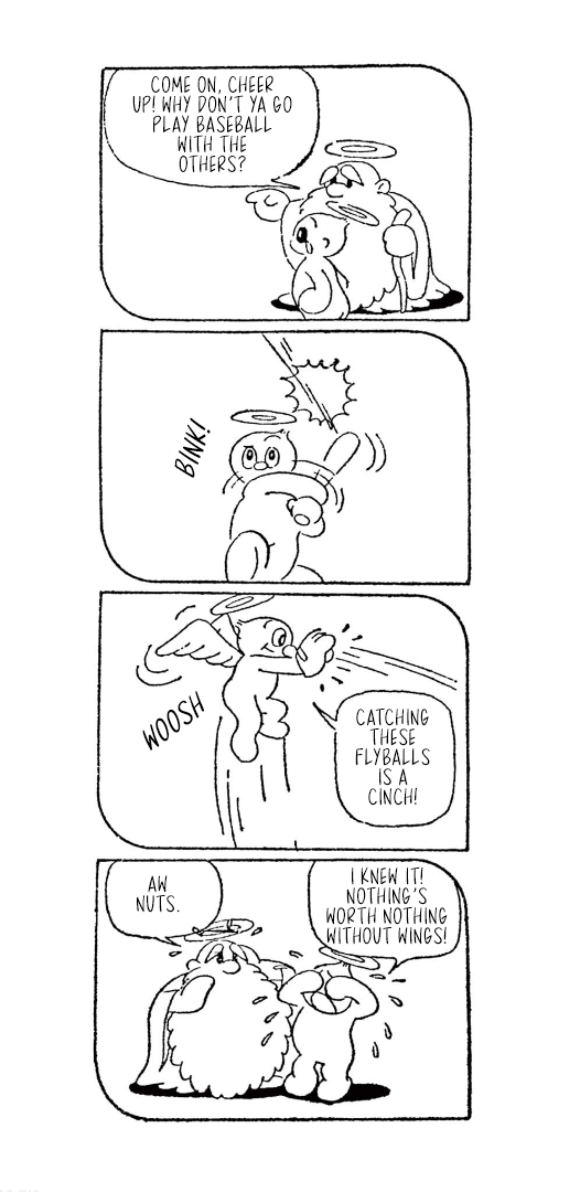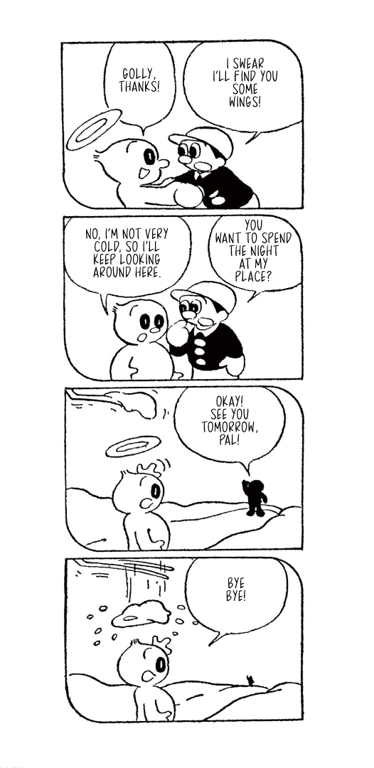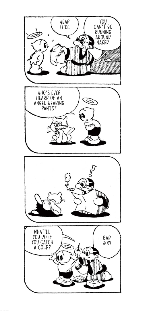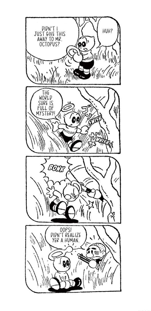 They weren't always titans of the industry, though, which is where today's translation comes in. Here is Little Tama's an Angel (Tenshi no Tama-chan), the obscure--and for a and--debut work from the two for the Mainichi Shougakusei kids newspaper, published from December 16, 1951 through April 4, 1952, when Fujimoto and Abiko were still in high school.