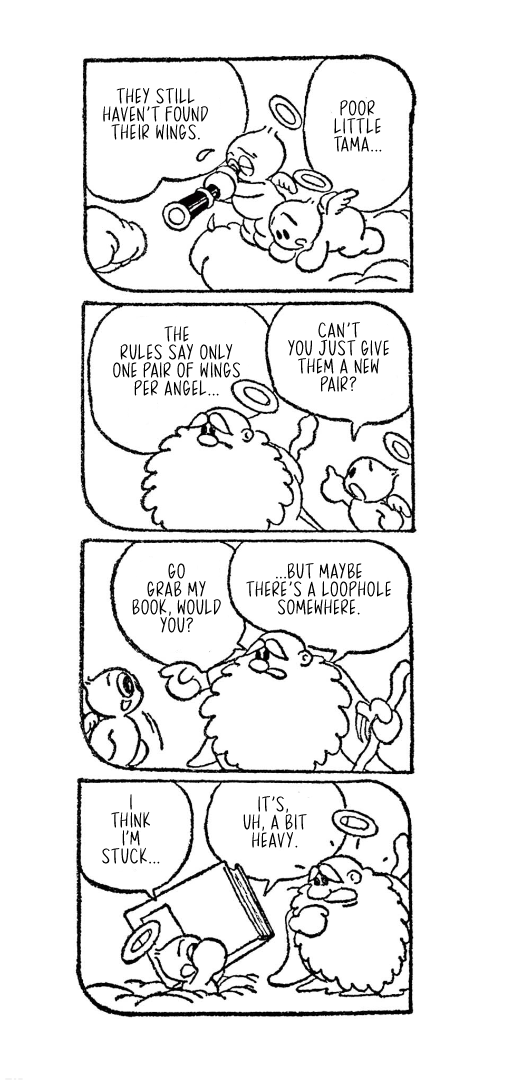It's a real charmer, a delightful little comedy adventure showing off their manga chops and hinting at where they'd eventually go with their work. Tragically, it was cut short, ending suddenly just as it was starting to build up to something bigger, but the twenty-six comic strips we got are a joy either way.