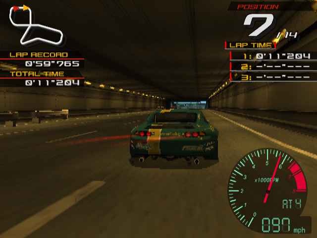 That loving attention to the people behind the cars in Type 4 is gone. Here, the cars are the people. Just like in the future predicted by Electrosphere, the separation between the two is silly and outdated, V seems to say. There is no story mode, no characters (with the notable exception of a radio DJ — a disembodied voice filtered through technology) here. The ghost is in the machine now; the consciousness has been affixed to metal. I see that yellow car that keeps hitting me and passing me and stealing my chance at winning and I hate them. I respect them. I know them.
