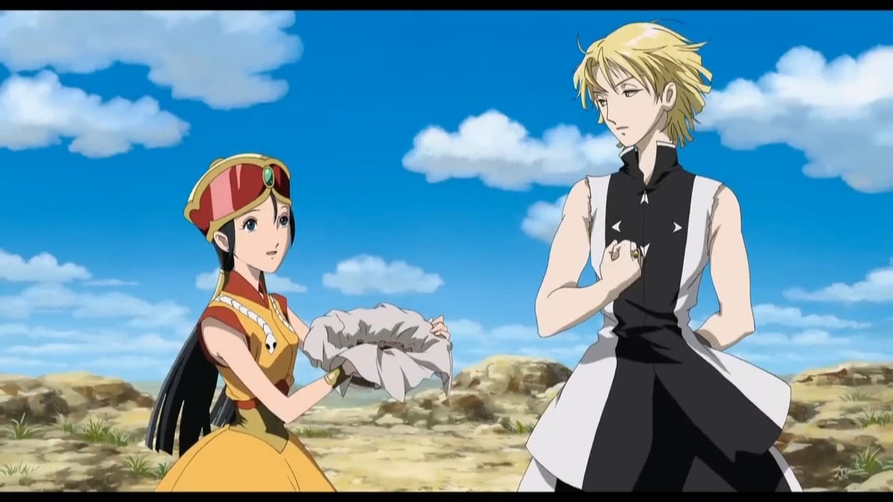 Following the pacifist Bellin Ajelli as she travels to her planet’s capital and her evolving relationship with the prince Truhallon, acting as her bodyguard in the face of a suspected terrorist plot, Gothicmade is decidedly not the type of movie you might be expecting. Sure, the poster seems to promise dark giant robot action and yeah, the title brings to mind images of goth girls in maid outfits (or maybe my brain is just poisoned), but the reality is something slower and quieter than any of that. This is story that exists almost entirely in pastoral imagery, gentle folk music, and contemplative fades to black, each scene clearly delineated like the chapter in a book. It’s a movie about two people, stand-ins for broader moral positions, talking and lounging and sometimes sitting together in silence and slowly understanding the other — a fable from the future, filtered through sci-fi politics.